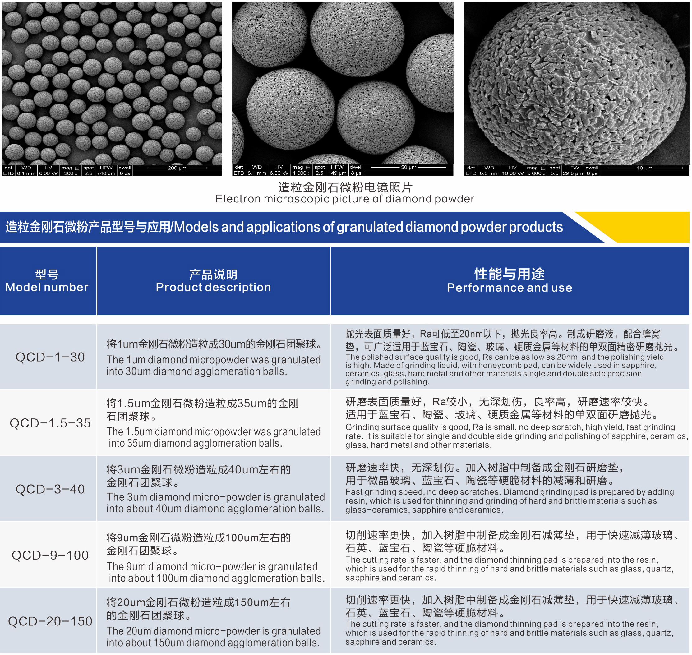 圣高機(jī)械采用自研技術(shù)和獨(dú)特工藝制備出的造粒金剛石微粉顆粒球形度高、研磨速率快,同時(shí)Ra值小,不易造成深劃傷,加工良率高。該造粒微粉可制備成金剛石研磨液或鉆石研磨墊,廣泛適用于藍(lán)寶石、SiC、微晶玻璃、陶瓷、硬質(zhì)金屬等硬脆材料的單雙面減薄、研磨和拋光。